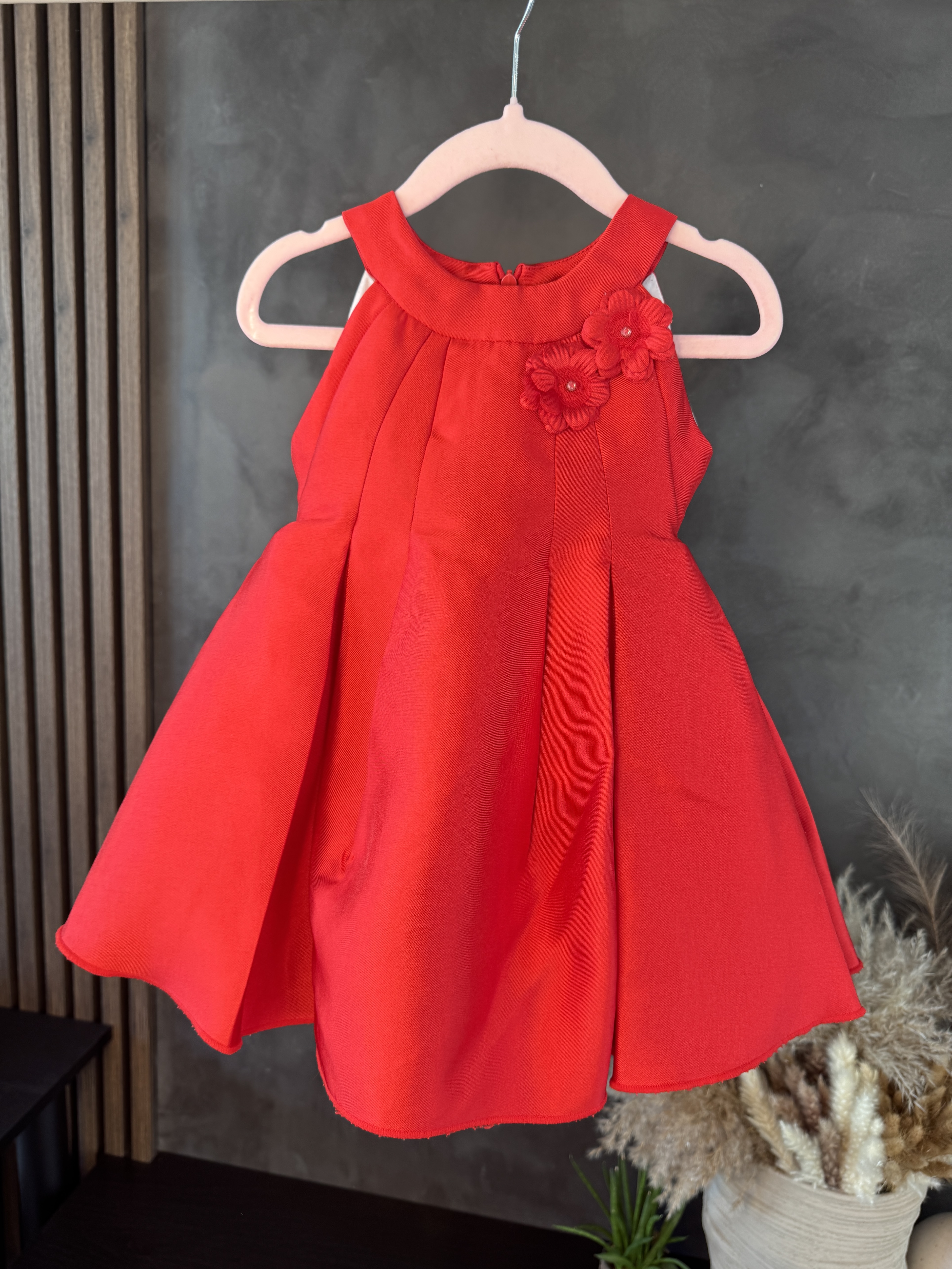 Elegancka sukienka na ramiączkach w rozmiarze 92 od marki Mayoral to doskonały wybór dla dziewczynki, która chce wyglądać wyjątkowo podczas świąt, przyjęć czy rodzinnych uroczystości. Intensywny czerwony kolor nadaje sukience wyrazistego charakteru, a rozkloszowany krój sprawia, że sukienka pięknie układa się podczas ruchu, dodając dziewczęcej lekkości i elegancji.