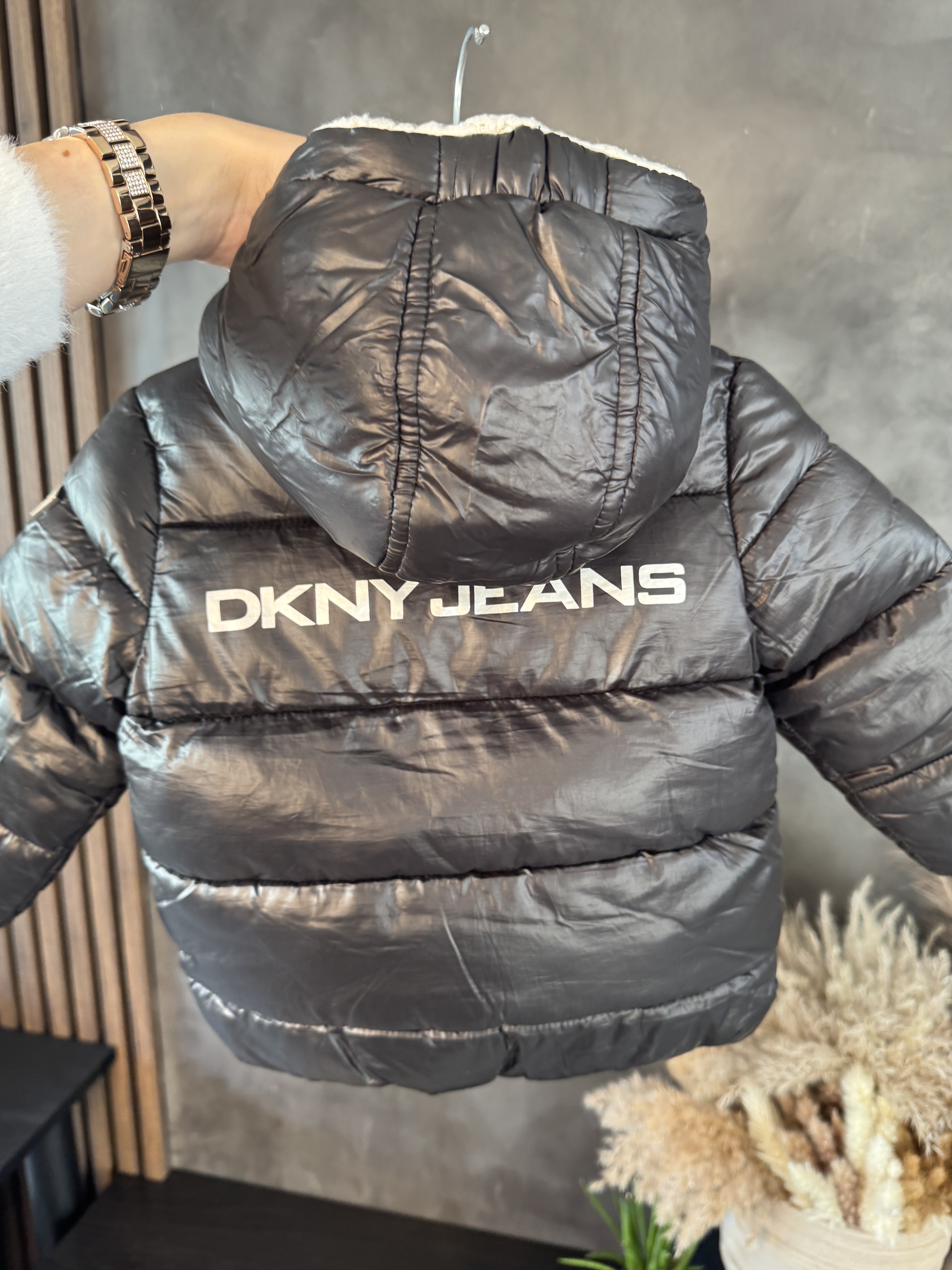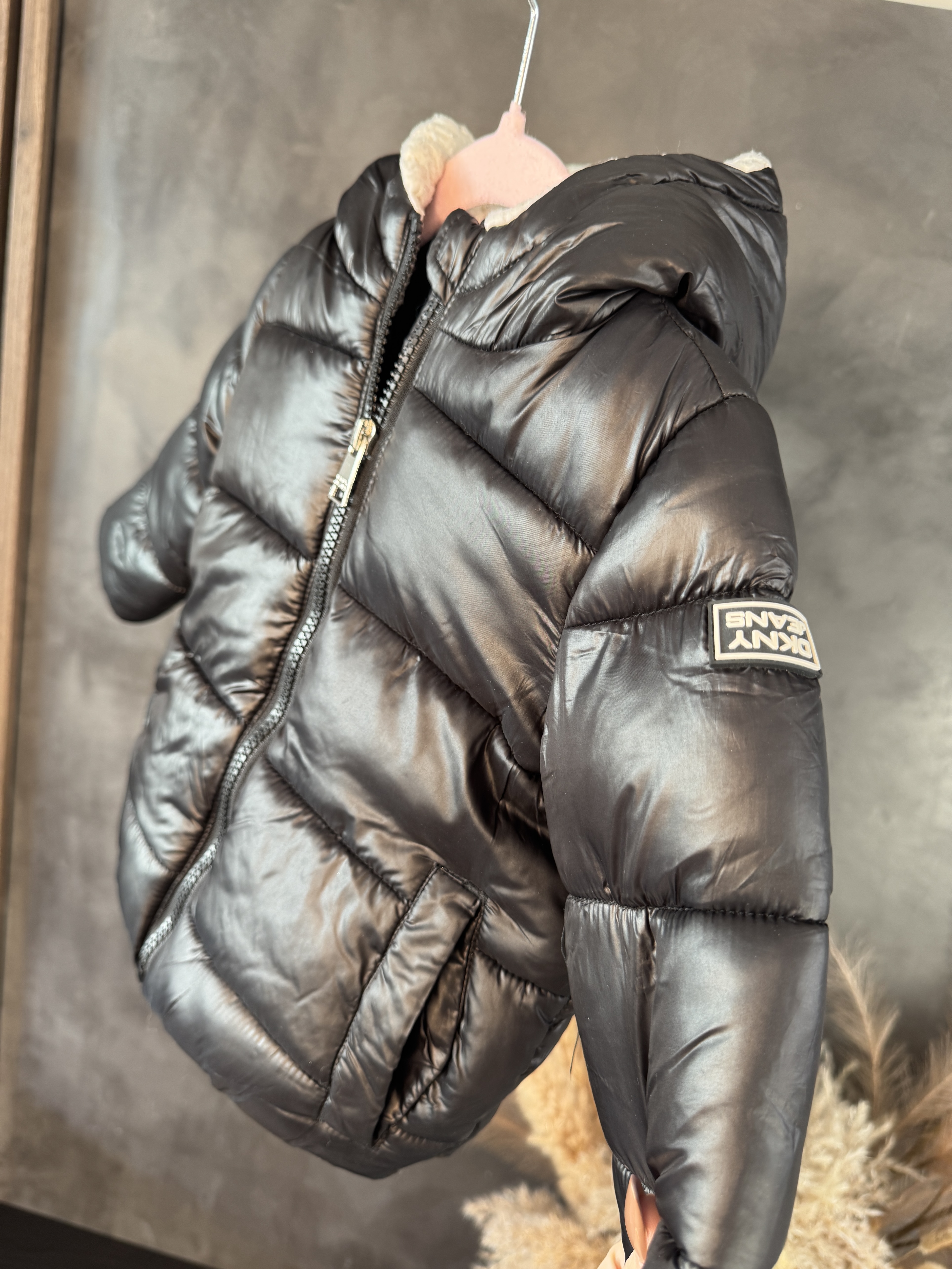 Kurtka zimowa z kapturem DKNY rozmiar 80 – ciepło, komfort i styl