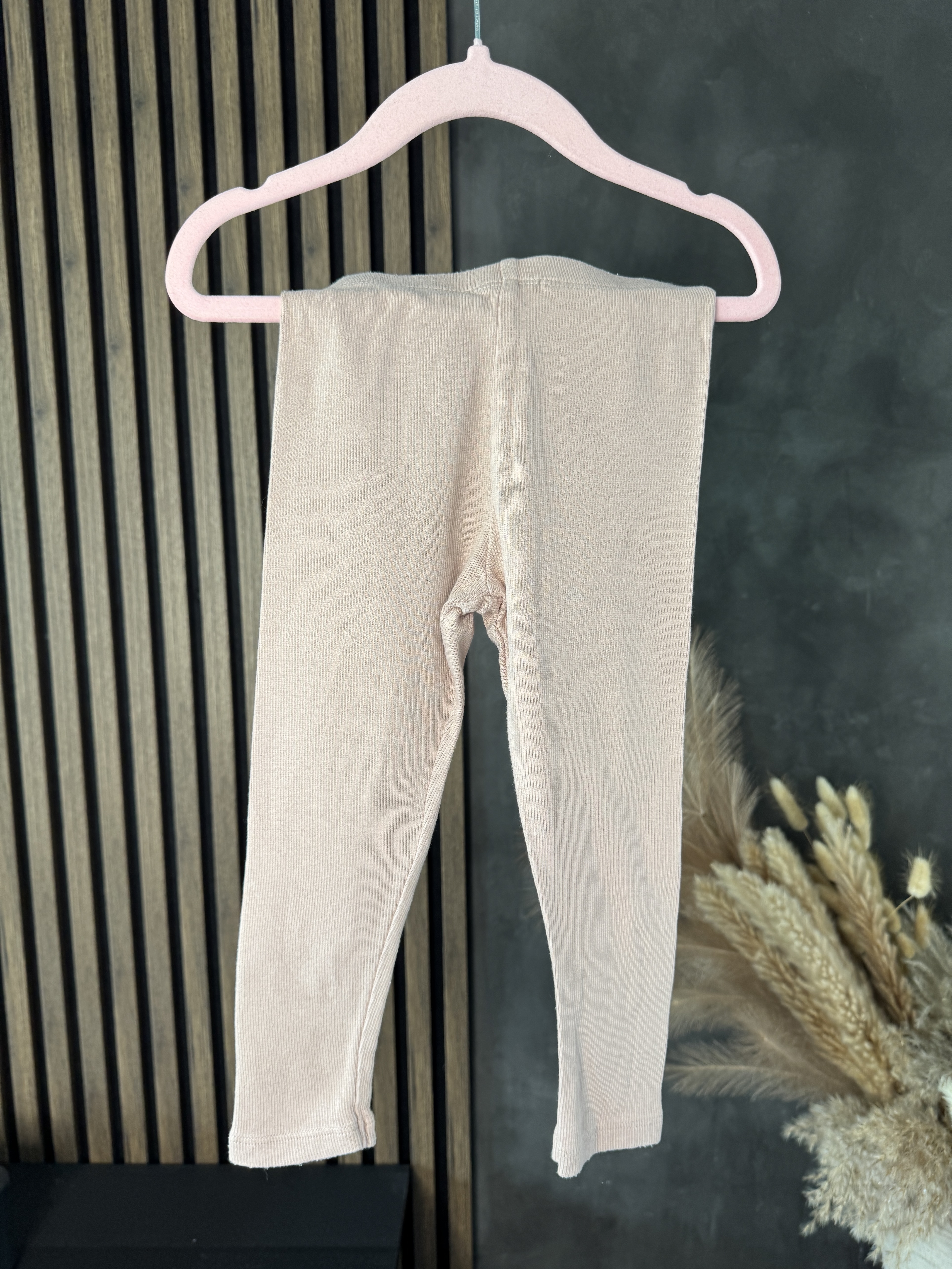 Legginsy wykonane zostały z miękkiej, elastycznej dzianiny prążkowanej, która delikatnie otula ciało i nie uciska. Dzięki naturalnym włóknom są przewiewne, a jednocześnie wystarczająco ciepłe, by sprawdzić się podczas chłodniejszych dni. Elastyczna talia zapewnia idealne dopasowanie i wygodę przez cały dzień.