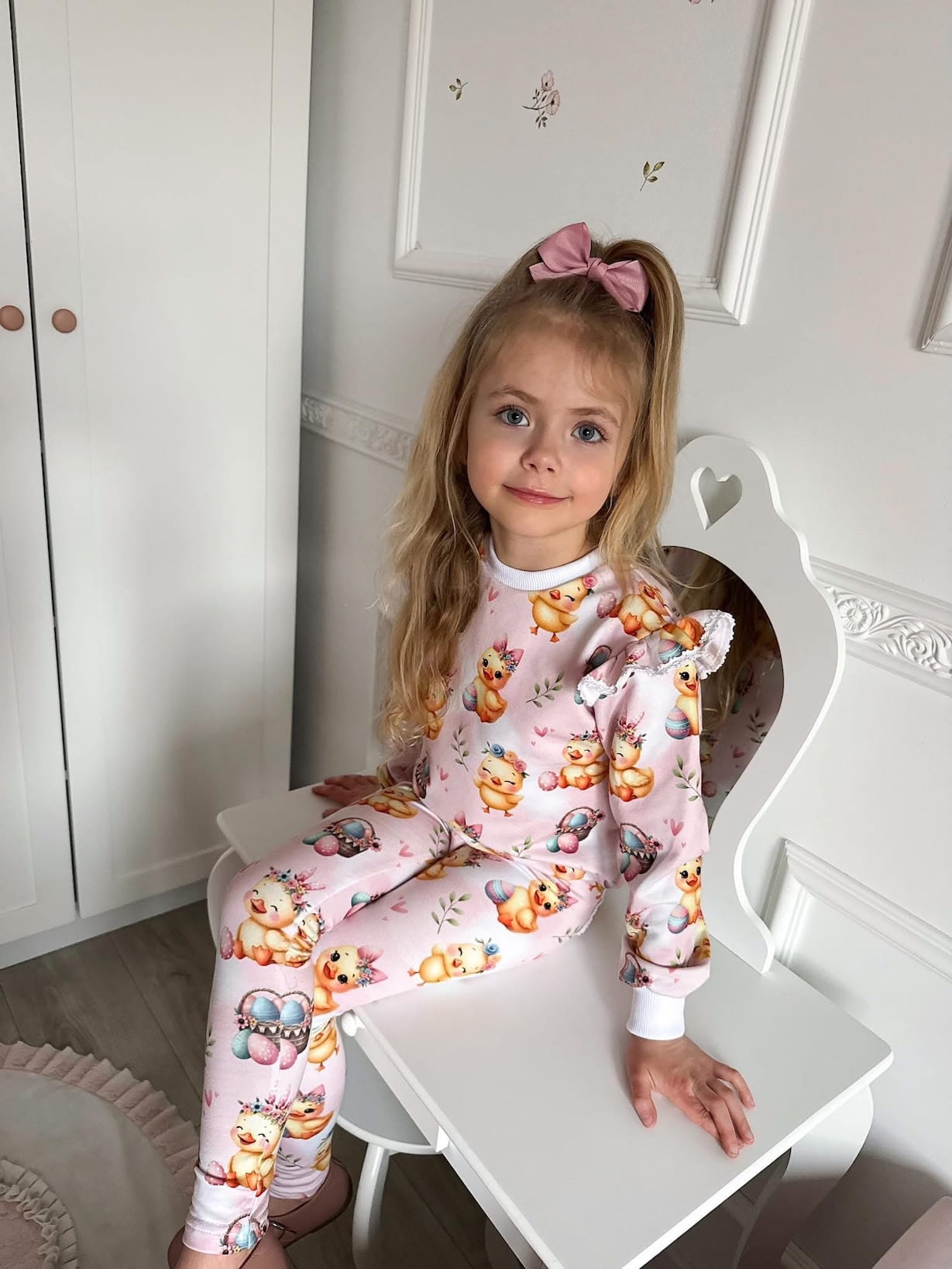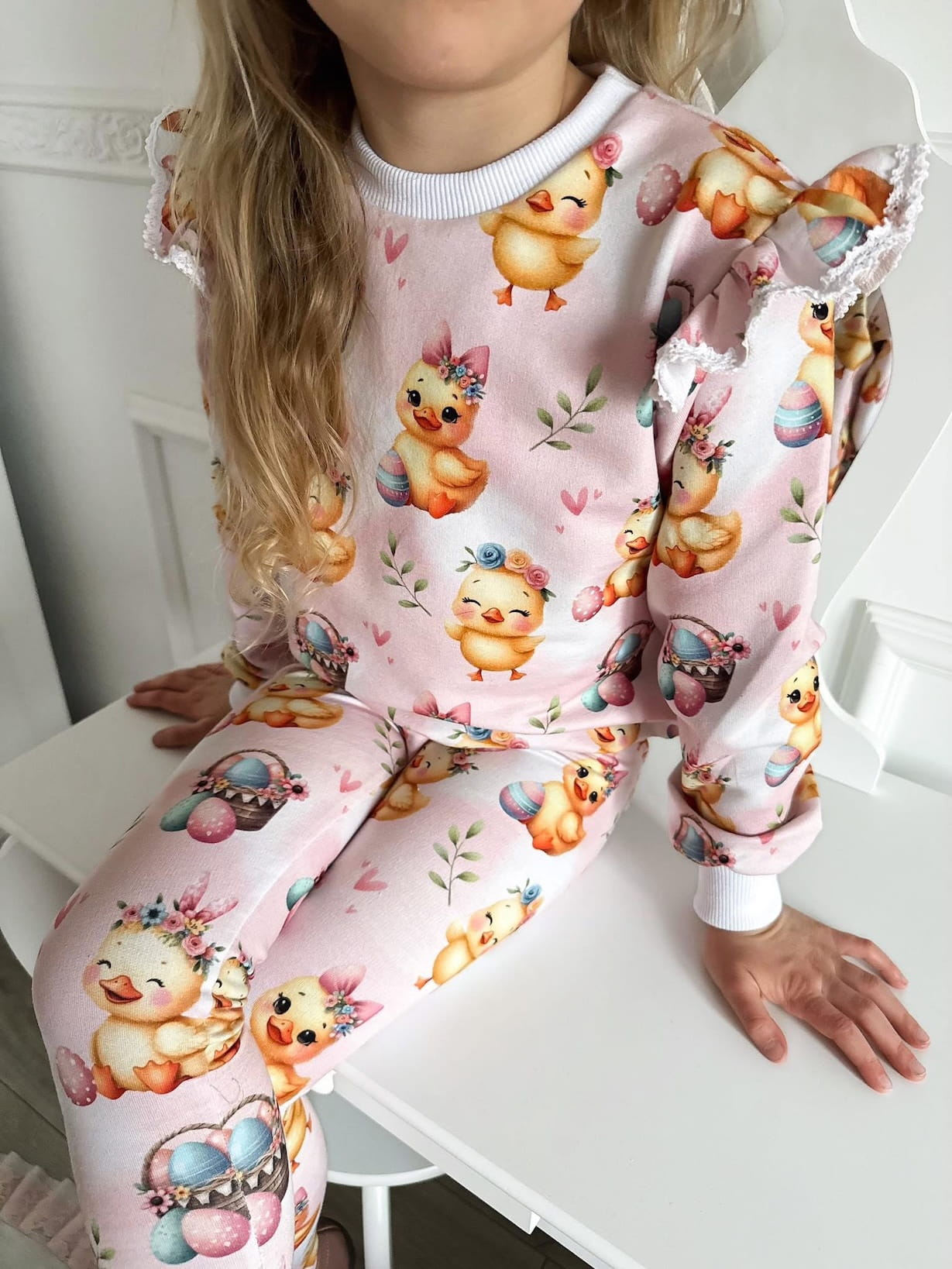 Legginsy w print wielkanocnych kurczaczków to idealny wybór na wiosenne dni. Kolorowy, radosny wzór nadaje im wyjątkowego charakteru, a urocze kurczaczki wprowadzają świąteczny klimat do dziecięcej garderoby.
