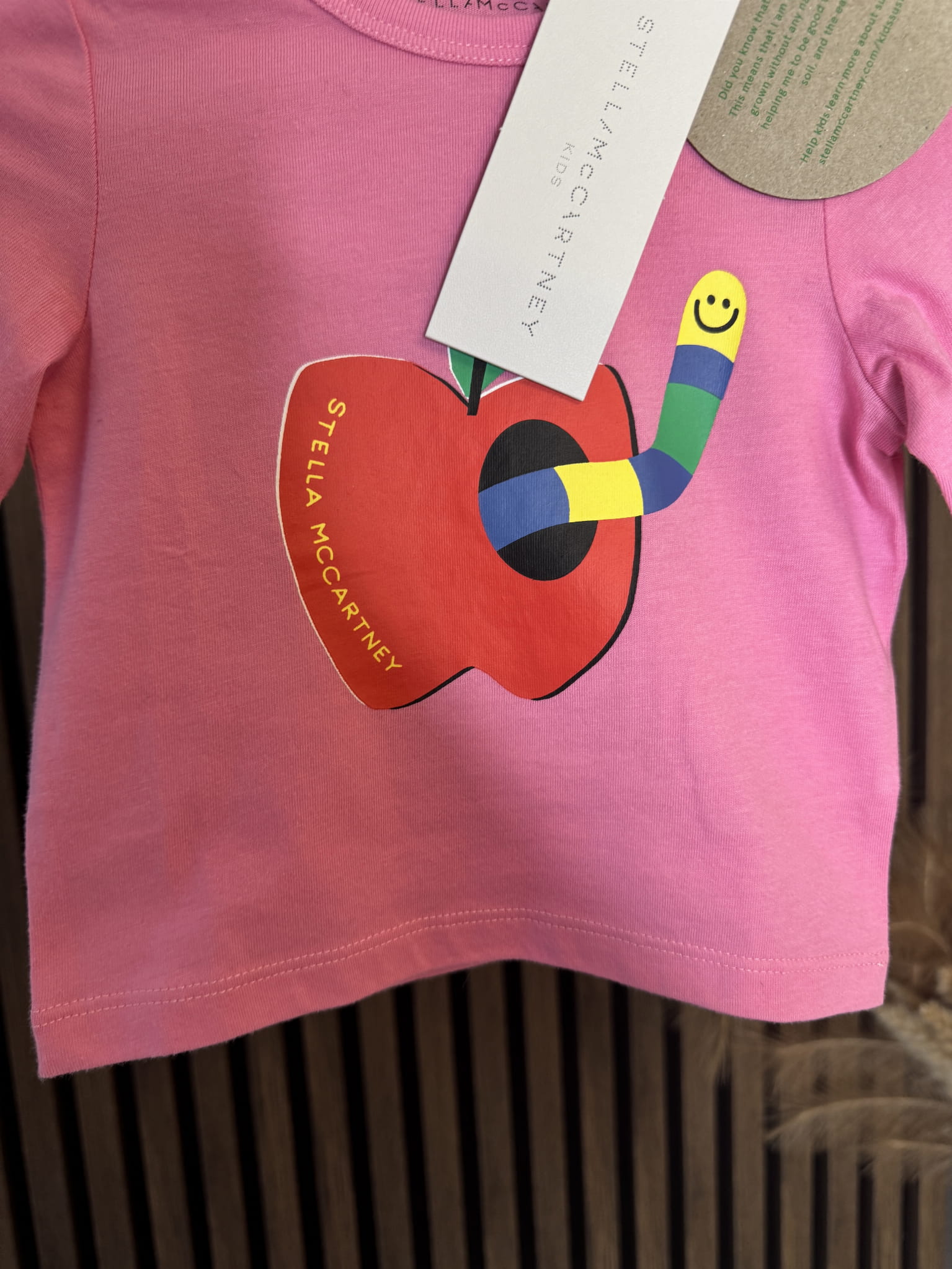 - Luksusowa bluzka z długim rękawem z nadrukiem jabłka z robakiem od Stella McCartney Kids