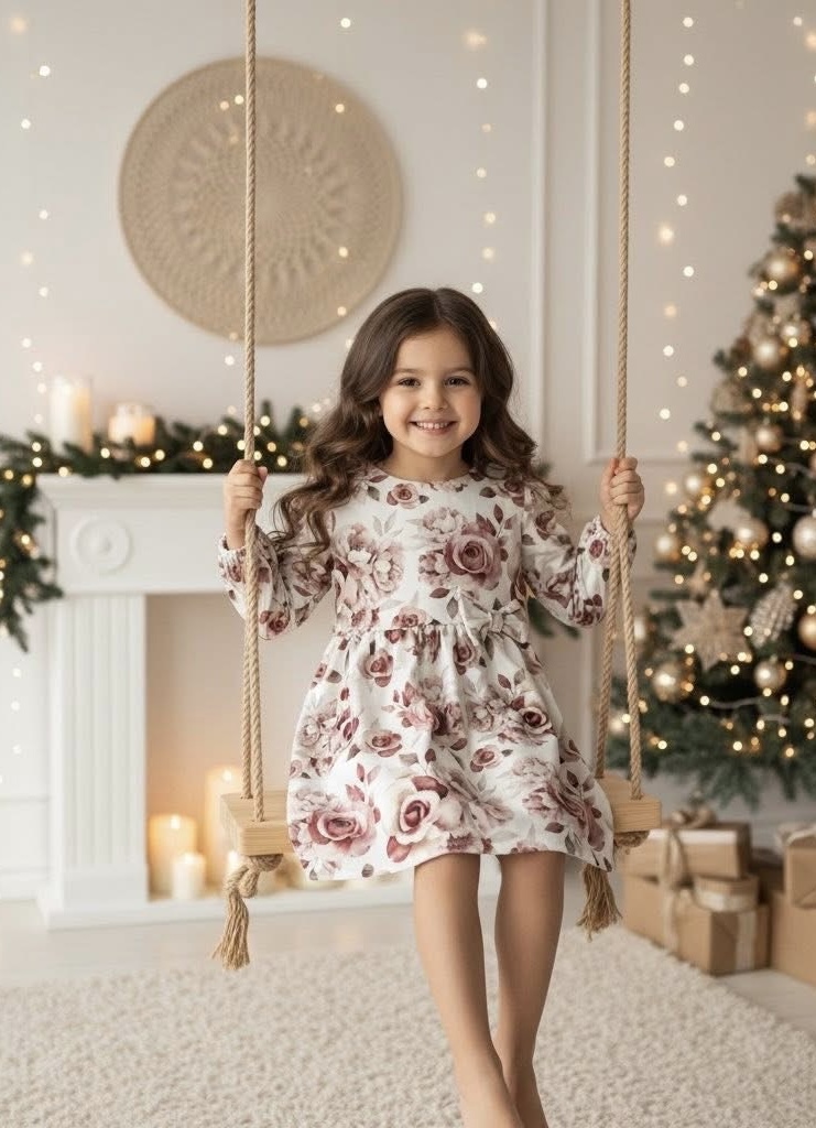 Ta sukienka z długim rękawem w kwiaty róże to propozycja pełna uroku i delikatności. Piękny, dziewczęcy wzór oraz ozdobna kokarda z przodu sprawiają, że sukienka przyciąga wzrok i prezentuje się wyjątkowo elegancko. To idealny wybór na rodzinne uroczystości, urodziny czy spotkania w przedszkolu.