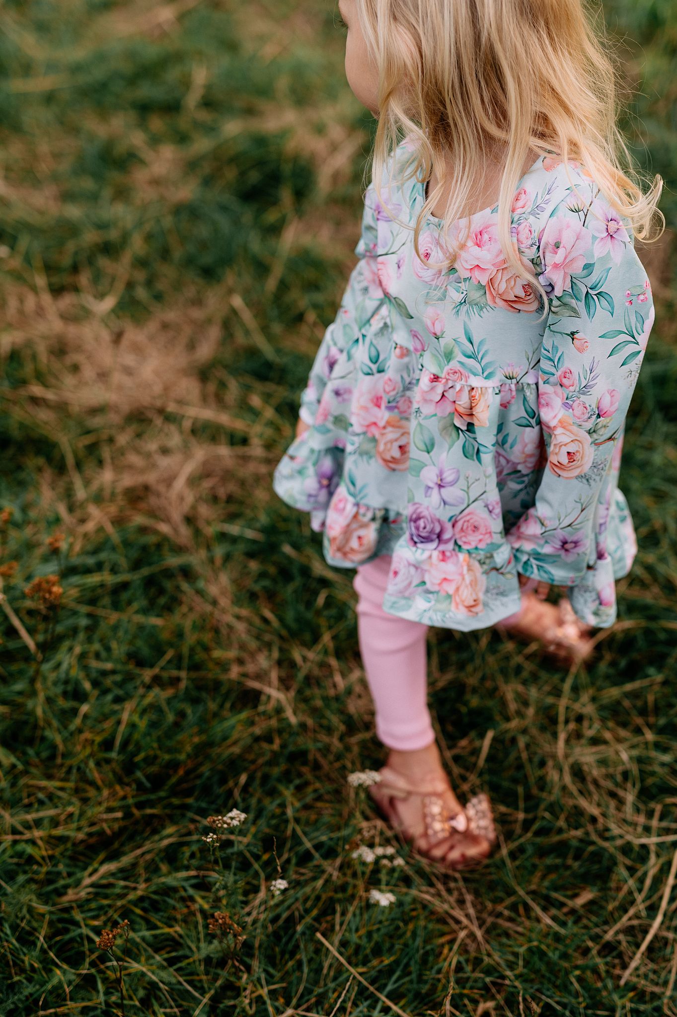 Kwiatowy wzór róż oraz pastelowe kolory sprawiają, że tunika pięknie wygląda na każdej dziewczynce. To świetna baza do wielu stylizacji i wyjątkowy element garderoby, który przyciąga wzrok.